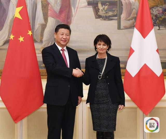 1月16日,國家主席習近平在伯爾尼同瑞士聯邦主席洛伊特哈德舉行會談。(新華社記者 饒愛民 攝)