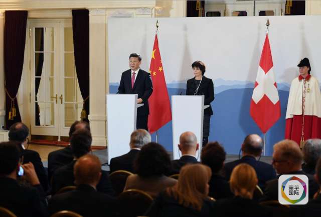 1月16日,國家主席習近平在伯爾尼同瑞士聯邦主席洛伊特哈德舉行會談。 這是會談后,兩國元首共同會見記者。(新華社記者 饒愛民 攝)