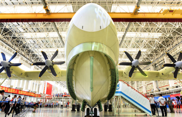 2016年7月23日,大型滅火/水上救援水陸兩棲飛機AG600在廣東珠海總裝下線。(新華社記者 盧漢欣攝)
