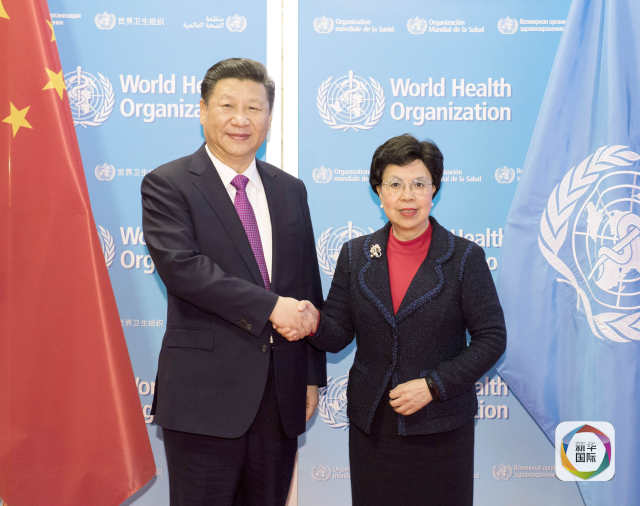 1月18日,國家主席習(xí)近平在瑞士日內(nèi)瓦訪問世界衛(wèi)生組織并會見陳馮富珍總干事。(新華社記者李學(xué)仁攝)
