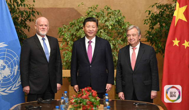 離開世界衛(wèi)生組織總部,習(xí)主席來到萬國宮瑞士廳,同第71屆聯(lián)大主席湯姆森和聯(lián)合國秘書長古特雷斯舉行會見。這也是古特雷斯今年1月正式履新聯(lián)合國“掌門人”后,習(xí)主席和他的第一次會面。