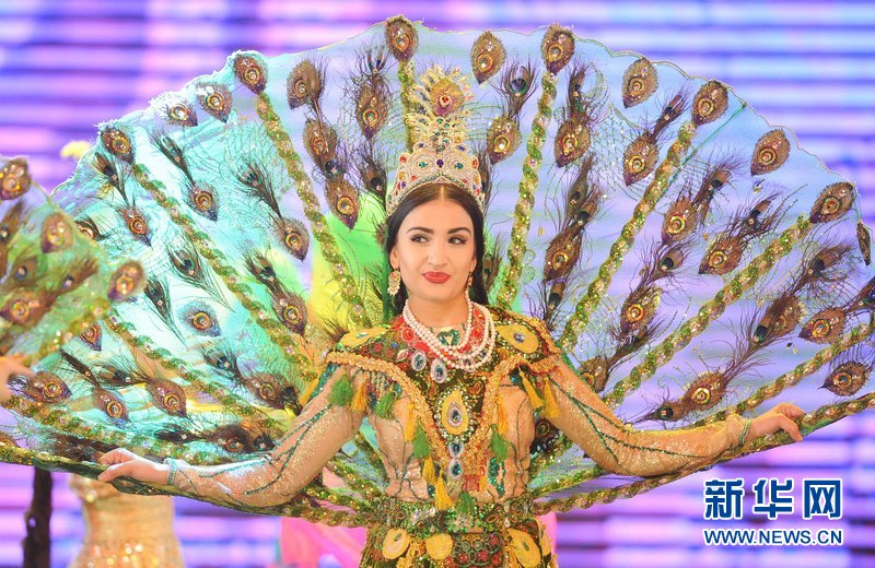 1月18日晚,烏茲別克斯坦首都塔什干人民友誼宮,烏茲別克斯坦舞蹈演員在表演中烏傳統舞蹈。
