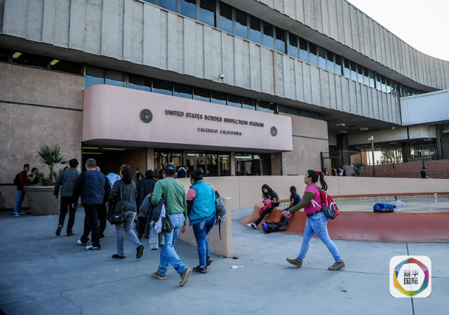 在卡萊克西科,墨西哥人準(zhǔn)備進(jìn)入海關(guān)關(guān)口回到墨西哥。(新華社記者張超群攝)