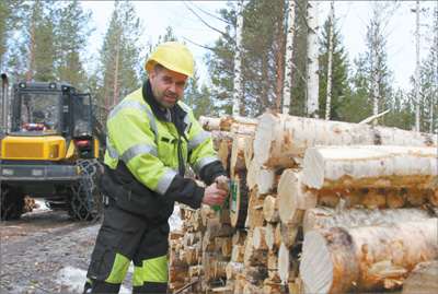 從芬蘭首都赫爾辛基驅車往北一個多小時,我們的四輪驅動汽車駛上一條小路。路上積雪越來越多,兩旁的森林也越來越密。循著轟鳴聲,我們看到一臺伐木機正在作業:一只碩大的機械手攥住云杉的底部,量直徑、切樹樁、去雜枝、測長度、斷木頭,幾秒鐘的工夫,一氣呵成。