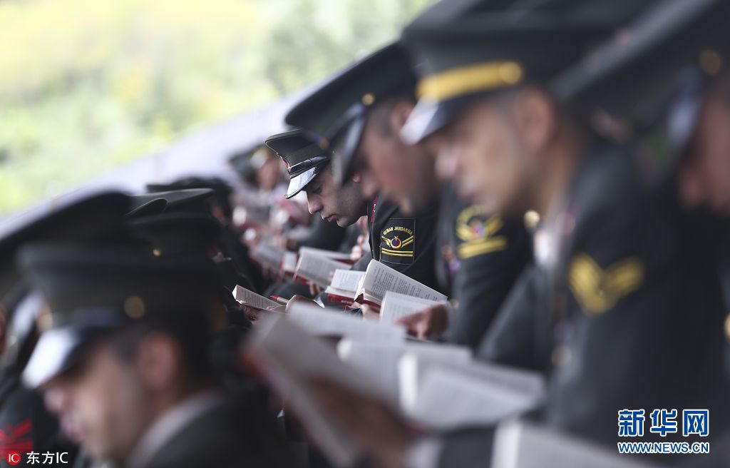 當(dāng)?shù)貢r(shí)間2017年5月18日,土耳其安卡拉,在憲兵和海岸警衛(wèi)學(xué)院體育場(chǎng),土耳其憲兵參加集體讀書(shū)活動(dòng),打破“最多人一起讀書(shū)”吉尼斯紀(jì)錄,慶祝憲兵部成立178周年。包括土耳其憲兵、海岸警衛(wèi)隊(duì)及其家人在內(nèi)等5754人參加了這一集體活動(dòng)。(圖片來(lái)源:東方IC)