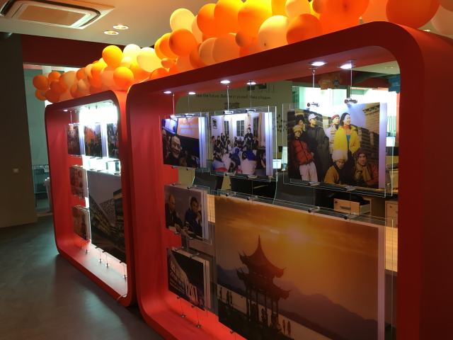 一進門,記者就看到一面紅框照片墻,馬云和普京在圣彼得堡經濟論壇上的合影非常醒目。在明亮的落地窗前,“雙十一”的紅色標志讓記者恍惚回到了中國。