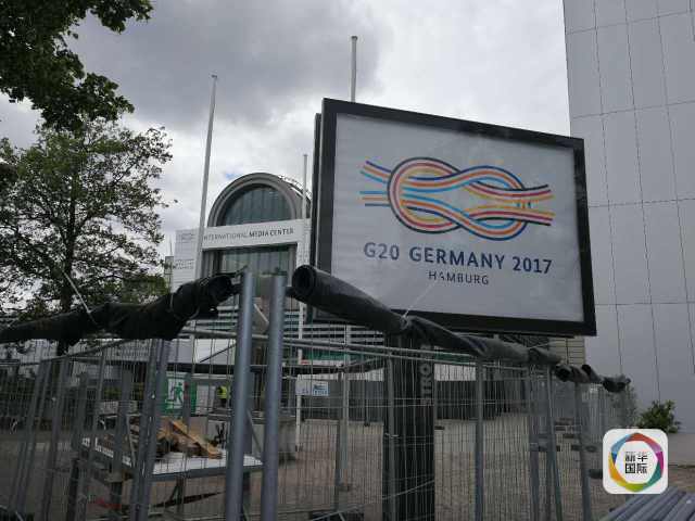(漢堡峰會(huì)主場(chǎng)地外的媒體中心門(mén)口,新華社記者劉杰攝)