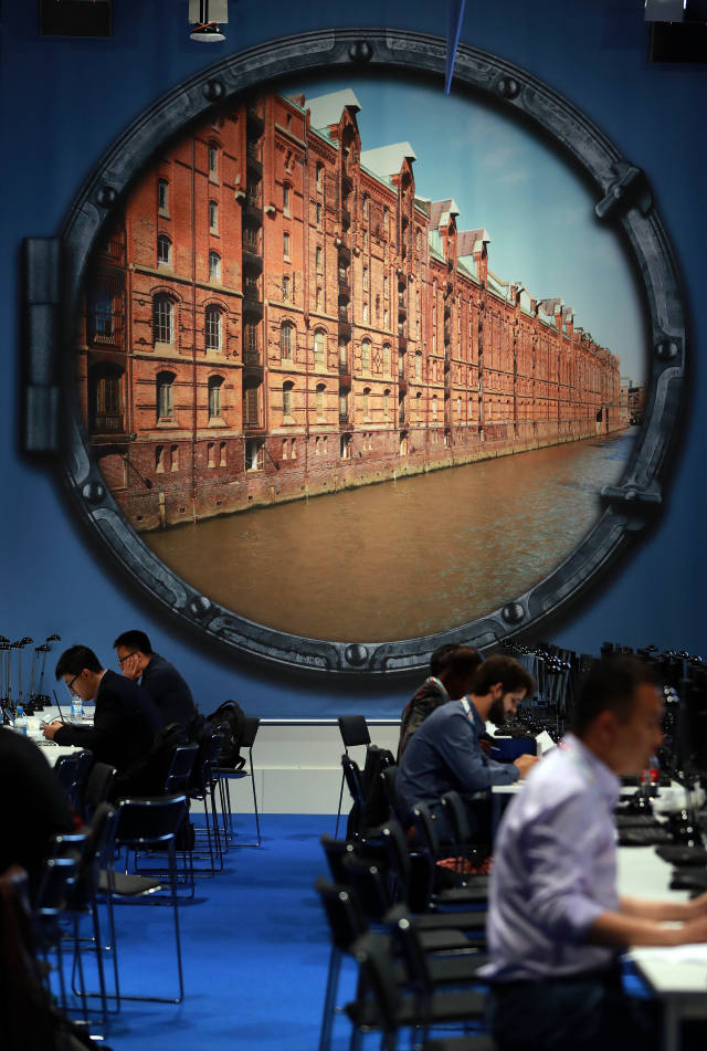 ↑這是7月6日在德國漢堡拍攝的G20領導人峰會國際新聞中心一景。新華社記者羅歡歡攝