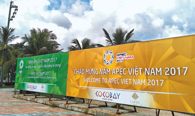 2017年亞太經合組織(APEC)領導人會議周將于11月6日在越南峴港拉開帷幕,其間將舉行APEC第二十五次領導人非正式會議。圖為峴港街頭的宣傳牌。記者 劉剛攝