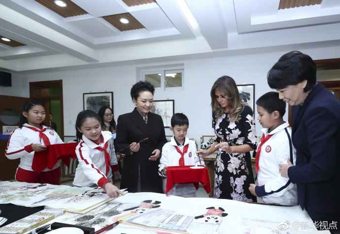 彭麗媛和梅拉尼婭在古建筑教室。(記者白潔、鞠鵬)(據(jù)新華社“新華視點(diǎn)”微博報(bào)道)