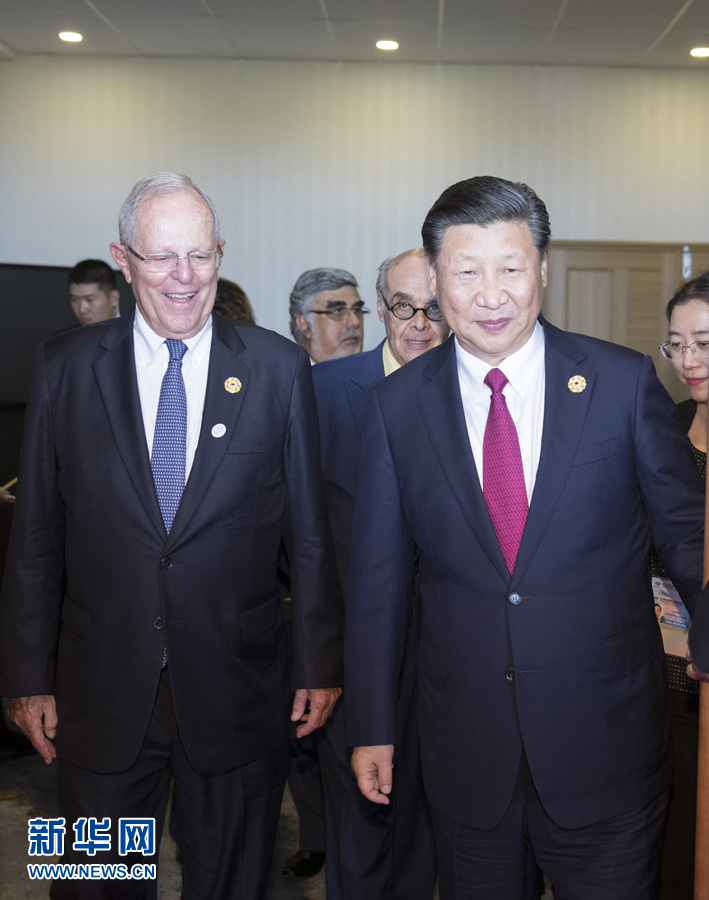 發(fā)表演講后,習(xí)近平簡(jiǎn)短會(huì)見(jiàn)了專(zhuān)程前來(lái)聆聽(tīng)演講的秘魯總統(tǒng)庫(kù)琴斯基。