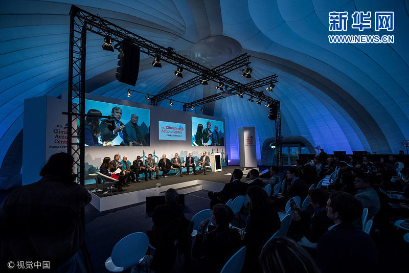 當?shù)貢r間2017年11月11日,德國波恩,“美國的承諾”發(fā)布活動舉行。雖然美國宣布退出了《巴黎協(xié)定》,但美國氣候談判代表仍出席了波恩的會議。美國除聯(lián)邦外的各級政府均派代表參加波恩會議,且主要目的就是表明他們?nèi)詫⒅铝τ趦冬F(xiàn)美國在巴黎做出的承諾。在美國國內(nèi),成千上萬的市長、州長、部落首領(lǐng)、企業(yè)高管以及普通美國人都在努力降低溫室氣體排放。這個名為“我們?nèi)栽趫允兀╓e Are Still In)”的聯(lián)盟的成員代表了美國一半以上的人口以及54%的經(jīng)濟產(chǎn)出。“我們?nèi)栽趫允亍保?We Are Still In)、“美國氣候聯(lián)盟”、“氣候市長”(Climate Mayors)和其它諸多計劃向全世界傳遞了這樣一個信息,即美國仍然有很多人正致力于擁有宏偉目標的氣候行動之中,而“美國的承諾”(America’s Pledge)正在尋求如何量化并傳播這些承諾。(圖片來源:視覺中國)