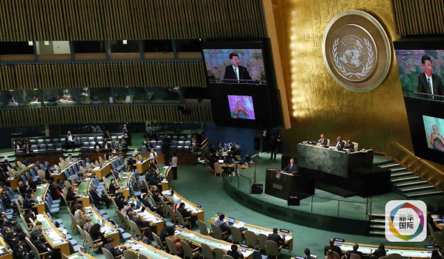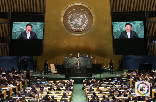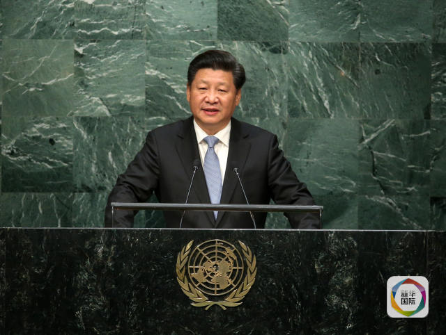 2015年9月28日,國家主席習(xí)近平在紐約聯(lián)合國總部出席第70屆聯(lián)合國大會(huì)一般性辯論并發(fā)表題為《攜手構(gòu)建合作共贏新伙伴 同心打造人類命運(yùn)共同體》的重要講話。新華社記者龐興雷攝