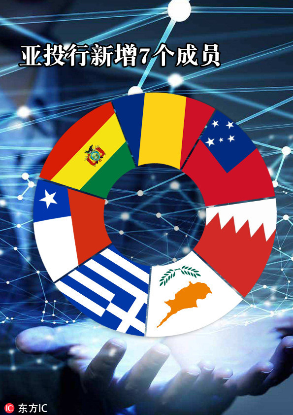 【二度“擴圍”】2017年5月13日,亞投行批準新一批7個意向成員加入,成員總數擴大到77個。此次新增的7個成員包括巴林、塞浦路斯、薩摩亞3個域內成員和玻利維亞、智利、希臘、羅馬尼亞4個非域內成員。