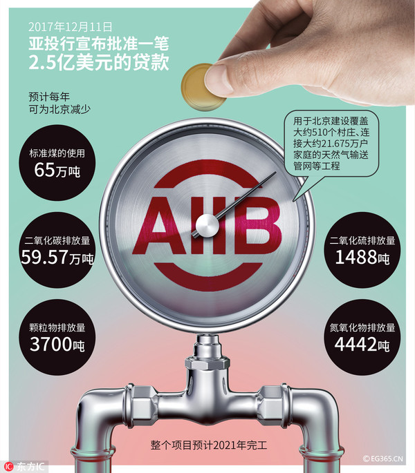 【首個對華項目落戶北京】2017年12月11日,亞投行首個對華項目落戶北京,用于天然氣輸送管網建設等工程,助力“北京藍”。秉持“簡潔、廉潔、清潔”的核心價值觀的亞投行,贏得世界廣泛信任。
