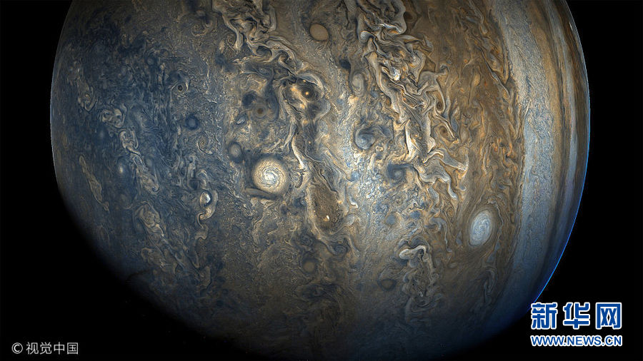 12月21日訊(具體拍攝時(shí)間不詳),這一系列由木星探測(cè)器“朱諾”號(hào)帶來(lái)的高清圖,錯(cuò)綜復(fù)雜的星云結(jié)構(gòu)看上去就像印象派大師的畫(huà)作。(圖片來(lái)源:視覺(jué)中國(guó))