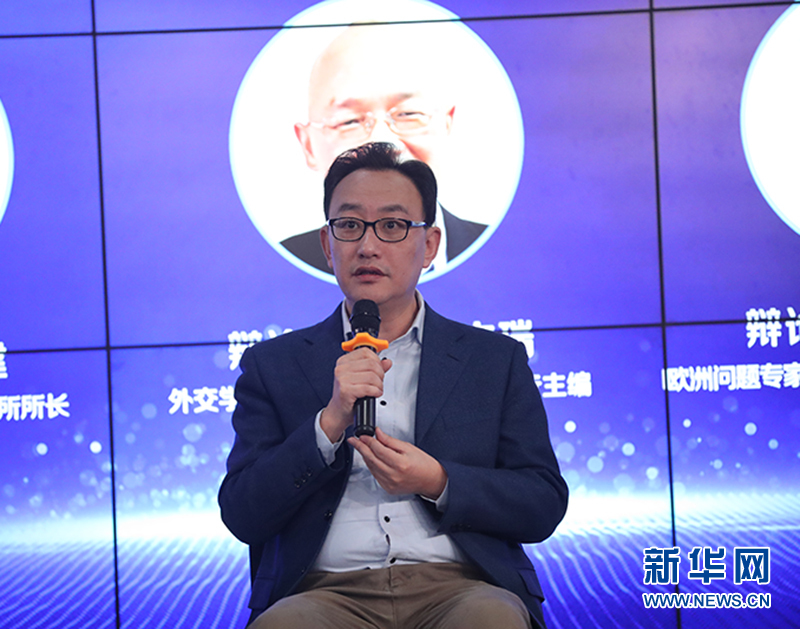 12月26日,新華網第八屆“縱論天下”國際問題研討會成功舉行。圖為中國社科院國際合作局副局長、歐洲問題專家田德文在發言。新華網發(郭小天攝)。