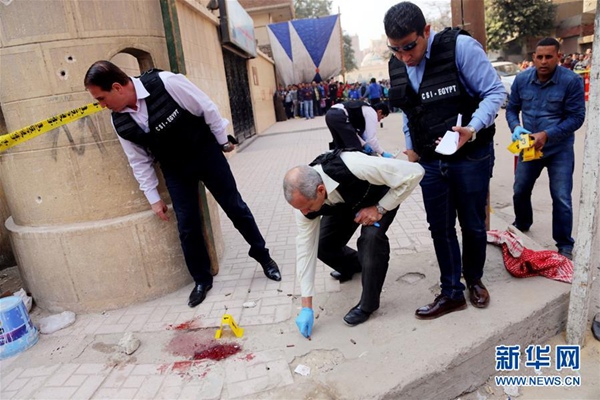 12月29日,警察在埃及開羅教堂襲擊事件現(xiàn)場調(diào)查。新華社發(fā)(艾哈邁德·戈馬攝)