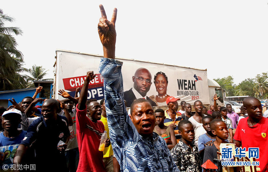 12月28日,利比里亞蒙羅維亞,前世界足球先生喬治·維阿當選總統,支持者走上街頭慶祝。(圖片來源:視覺中國)