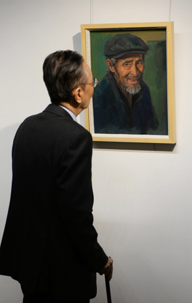 1月20日,在日本東京都美術館,一位觀眾欣賞中國藝術家油畫作品。“和——當代中國小幅油畫展”20日下午在日本東京都美術館開幕。本次畫展共展出當代中國極具代表性的小幅油畫56幅,吸引眾多日本參觀者駐足欣賞。新華社記者姜俏梅攝
