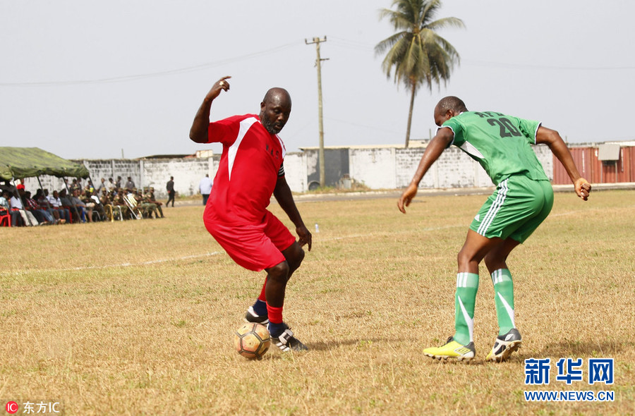 1月20日,利比里亞首都蒙羅維亞,利比里亞當選總統、前世界足球先生喬治-維阿參加慈善足球比賽,率領維阿全明星隊對戰利比里亞武裝部隊士兵隊。喬治-維阿在去年12月27日當選利比里亞新一任總統,并將于2018年1月22日就職。(圖片來源:東方IC)
