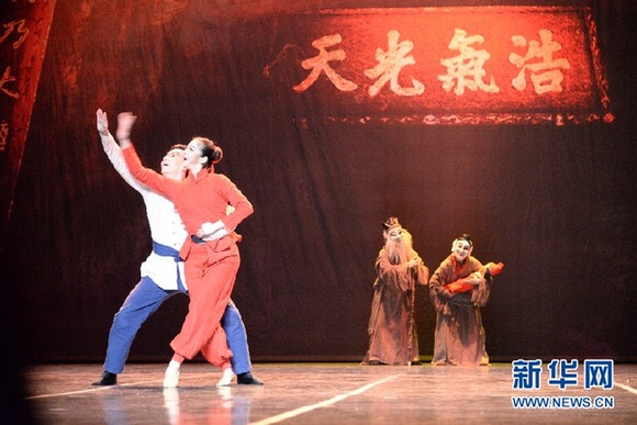 1月23日,北京舞蹈學院的舞蹈演員在克羅地亞首都薩格勒布國家劇院演出舞劇《儺·情》。新華網發 高磊攝