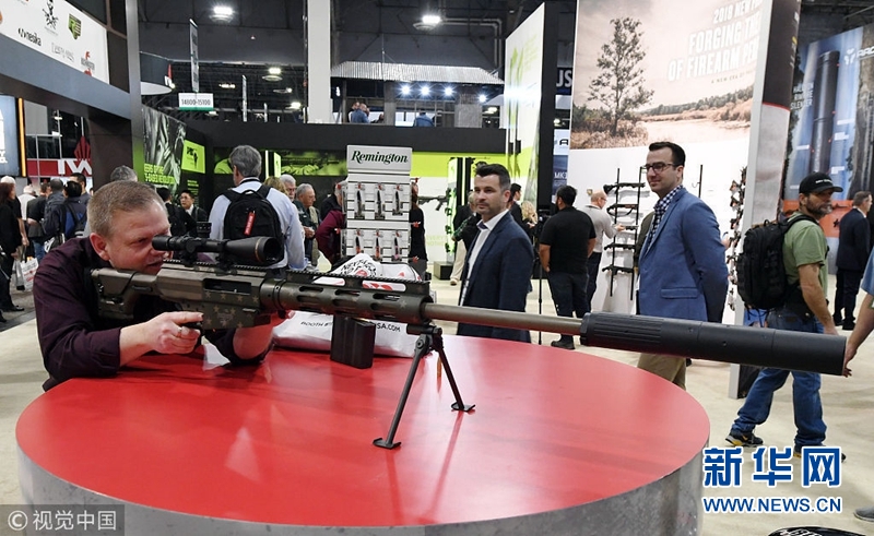 當地時間2018年1月23日,美國拉斯維加斯,美國全國射擊運動基金會(NSSF)舉辦槍支展銷會。(圖片來源:視覺中國)