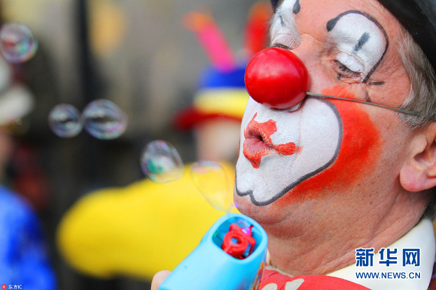 當地時間2月4日,英國倫敦,人們扮成小丑的模樣聚集在圣三一教堂,為英國“小丑之父”約瑟夫-格里馬爾迪(1778-1837)舉辦紀念會。(圖片來源:東方IC)
