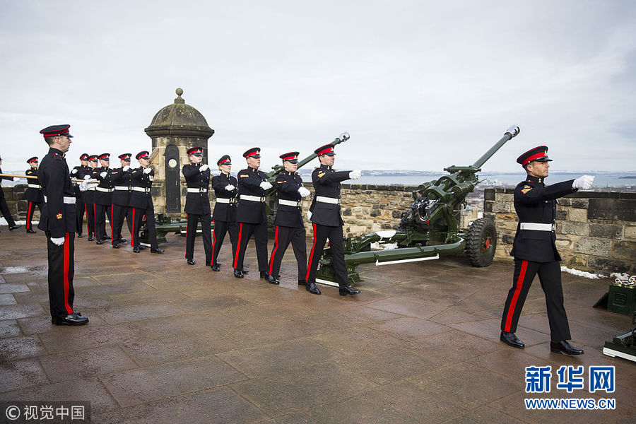 英國皇家炮兵在愛丁堡城堡鳴響21響禮炮 紀念女王登基66周年