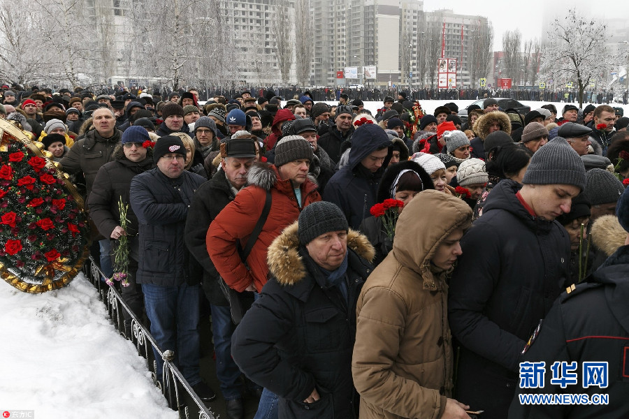 當地時間2018年2月8日,俄羅斯沃羅涅日市,俄羅斯為在敘利亞戰死飛行員Roman Filipov舉行葬禮。2月3日,俄飛行員Filipov駕駛一架蘇-25戰機在伊德利卜被敘反政府武裝擊落,Filipov成功彈射跳傘,但最后在與武裝分子戰斗中引爆手榴彈犧牲。(圖片來源:東方IC)