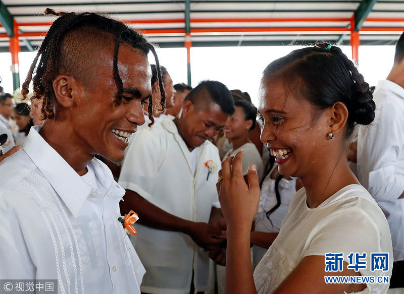 2月13日,菲律賓蘇比克,情人節前夕,當地舉辦集體婚禮。(圖片來源:視覺中國)