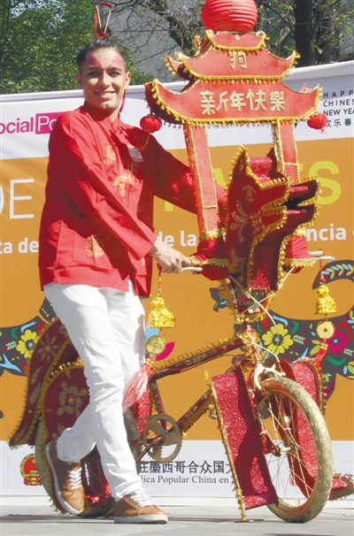 獲得大賽一等獎的作品是利用廢報紙在自行車上裝扮出的巨大“報紙犬”,狗年元素和綠色出行元素兼而有之,凸顯廢物利用的環保主題。三人創作團隊中的貝尼托告訴本報記者,他們經營一家以紙板、報紙、塑料等為原料制作手工藝品的小型公司,這次的作品耗時兩周。他說:“與去年相比,今年參加比賽的人更多、新點子也更多了,這樣的大型活動讓更多墨西哥人對中國文化產生興趣。”