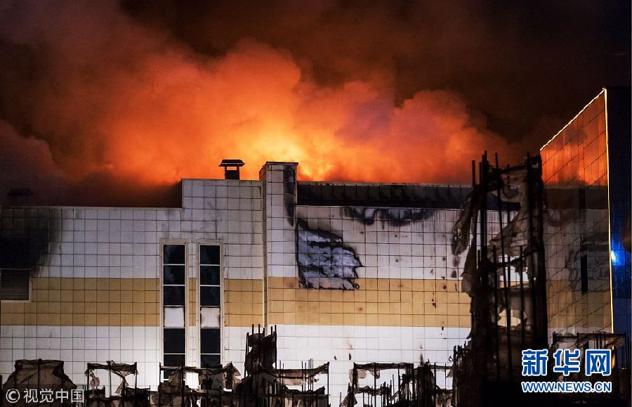 當地時間2018年3月25日,俄羅斯西西伯利亞南部城市克麥羅沃一家購物中心25日發生的重大火災的死亡人數已升至37人。此外,火災還造成43人受傷,約70人仍下落不明。(圖片來源:視覺中國)