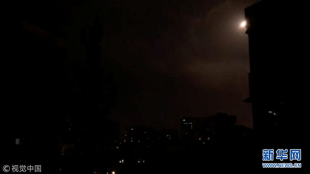 4月14日,敘利亞大馬士革,特朗普決定聯合英國和法國對敘利亞進行精確打擊,大馬士革傳出爆炸聲,敘利亞方面進行反擊。敘利亞阿拉伯敘利亞通訊社(SANA)報道,敘政府軍在大馬士革以南地區擊落13枚導彈。敘利亞國家電視臺此前稱美英法三國對敘利亞“發動了侵略”。(圖片來源:視覺中國)