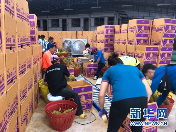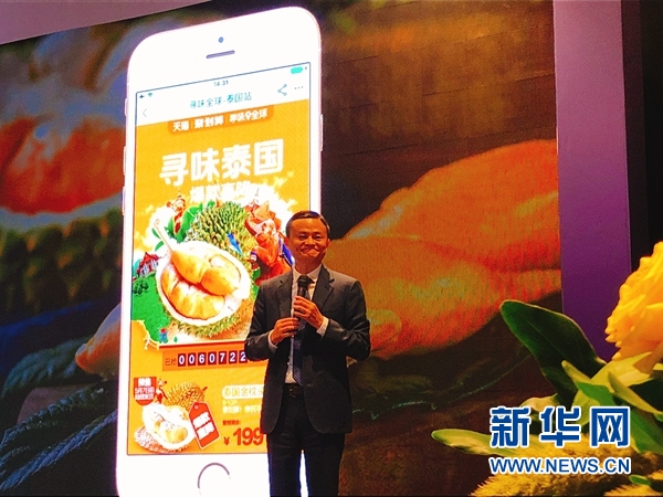 4月19日,阿里巴巴集團(tuán)董事局主席馬云與泰國(guó)政府簽訂備忘錄,在泰國(guó)建設(shè)大型智慧物流樞紐,讓榴蓮等農(nóng)產(chǎn)品的出口朝著72小時(shí)送達(dá)加速。新華網(wǎng)發(fā) 陳家寶攝