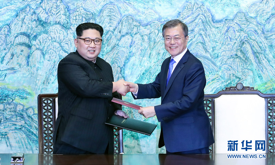 朝鮮最高領導人金正恩與韓國總統(tǒng)文在寅發(fā)表共同宣言