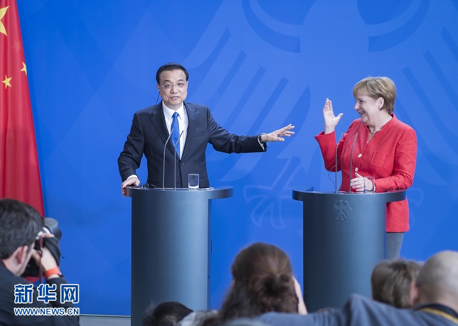 新華社柏林7月9日電(記者李志暉 崔文毅)當(dāng)?shù)貢r間7月9日下午,國務(wù)院總理李克強在柏林總理府與德國總理默克爾主持第五輪中德政府磋商后共同會見記者,介紹磋商成果并回答提問。