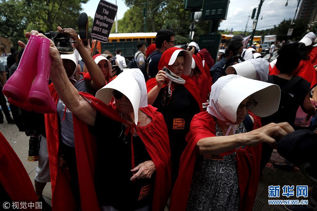 紐約:女性化身美劇中“使女”抗議特朗普 持鞋子聲援移民兒童(組圖)