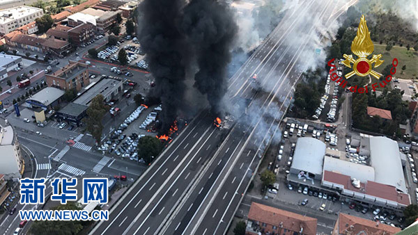 據(jù)安莎社報道,6日下午,一輛油罐車在博洛尼亞環(huán)線公路一座立交橋附近爆炸起火,殃及附近一些商店,造成約10輛汽車爆炸。爆炸及大火導致至少兩人喪生、數(shù)十人受傷。