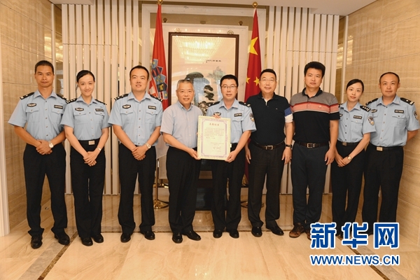 8月14日,中國駐克羅地亞大使胡兆明(左四)在薩格勒布為圓滿完成首次中克警務聯(lián)巡的中國警察頒發(fā)表彰證書。6名中國警察15日從克羅地亞首都薩格勒布啟程回國,為期一個月的中國與克羅地亞首次旅游季警務聯(lián)合巡邏圓滿結束。新華網(wǎng)發(fā) 高磊攝