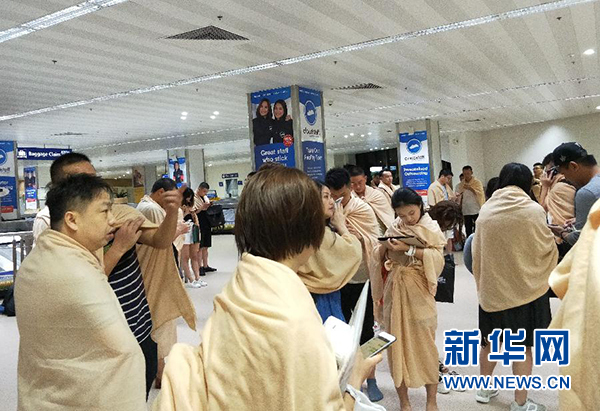 8月17日凌晨,乘坐廈航客機的乘客在飛機降落后在菲律賓馬尼拉機場等候。 新華社發