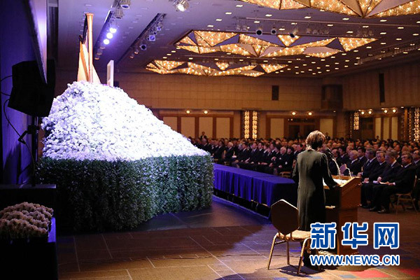 這是9月18日在日本東京拍攝的淺利慶太告別儀式現場。新華社記者 杜瀟逸 攝