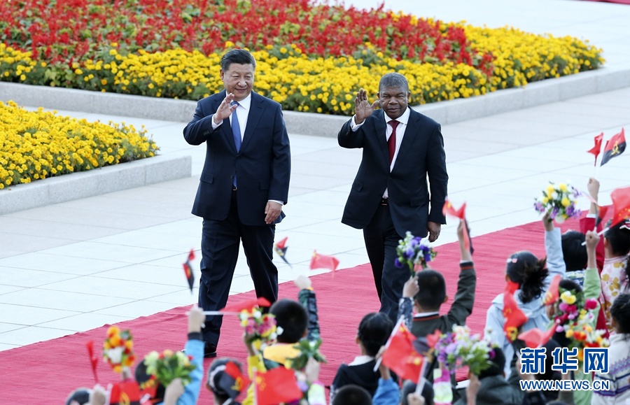 10月9日,國家主席習近平在北京人民大會堂同安哥拉總統洛倫索舉行會談。這是會談前,習近平在人民大會堂東門外廣場為洛倫索舉行歡迎儀式。 新華社記者姚大偉攝