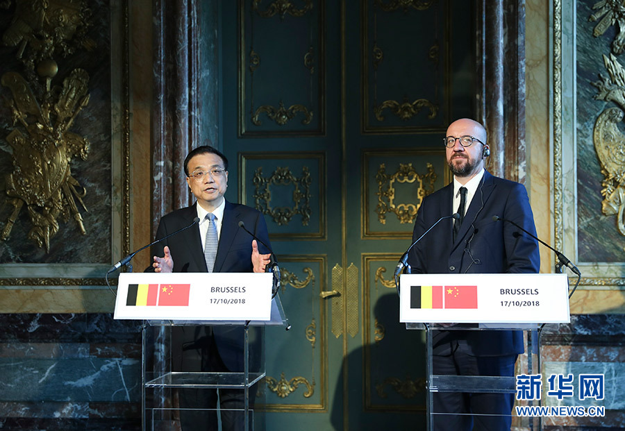 新華社布魯塞爾10月17日電(記者鄭明達 翟偉)當地時間10月17日上午,國務院總理李克強在布魯塞爾埃格蒙宮與比利時首相米歇爾共同會見記者。