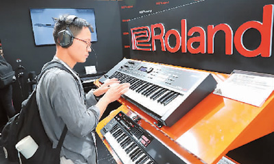 在首屆國際進博會上,樂器將是很多人關注的焦點。圖為一名中國消費者在試用新產品。新華社記者 方 喆攝