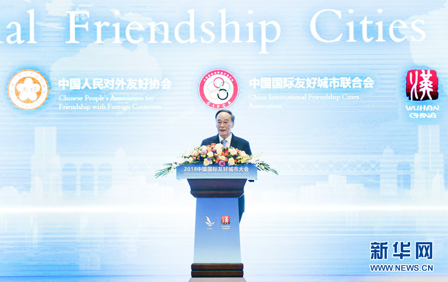 新華社武漢11月15日電(記者 廖君)2018中國國際友好城市大會15日在武漢開幕。國家副主席王岐山出席開幕式并做主旨發言。