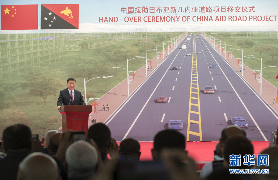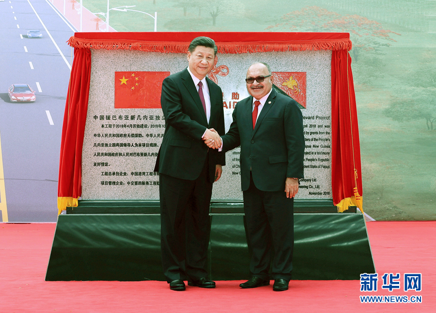 11月16日,國家主席習(xí)近平在莫爾茲比港和巴布亞新幾內(nèi)亞總理奧尼爾共同出席中國援建的獨立大道移交啟用儀式。新華社記者 鞠鵬 攝