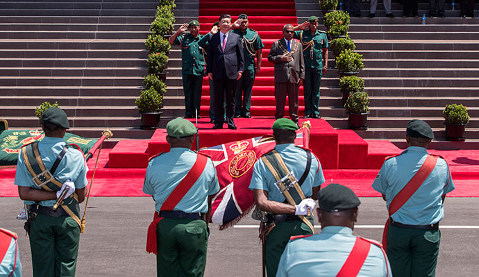 11月16日,國家主席習近平在莫爾茲比港會見巴布亞新幾內亞總督達達埃。會見開始前,達達埃在議會大廈前廣場為習近平舉行隆重歡迎儀式。新華社記者 鞠鵬 攝