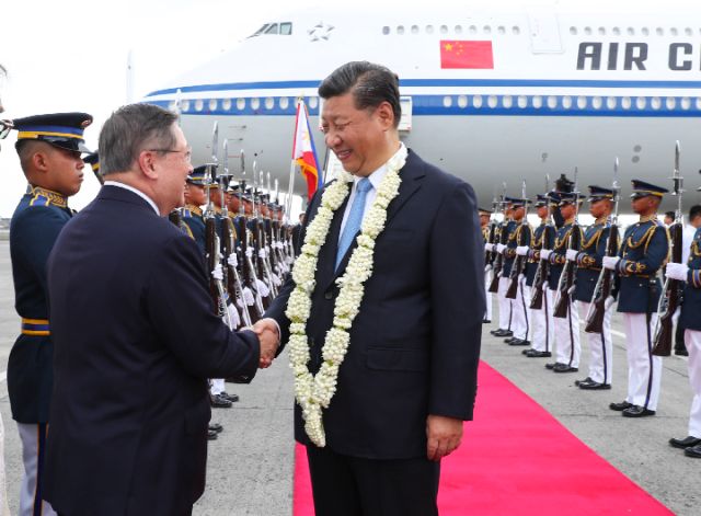 11月20日,國家主席習近平抵達馬尼拉,開始對菲律賓共和國進行國事訪問。這是習近平在機場受到菲律賓政府高級官員熱情迎接。新華社記者謝環馳攝
