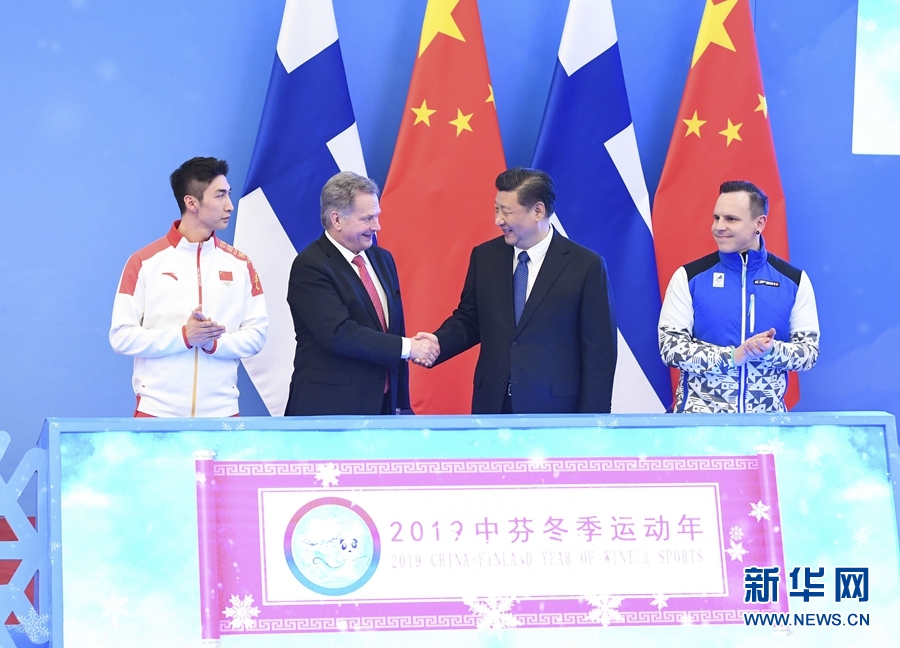 簽字儀式后,習近平同尼尼斯托共同出席了“2019中芬冬季運動年”啟動儀式。習近平在致辭中指出,新中國第一次走上奧運賽場就是參加1952年芬蘭赫爾辛基奧運會,五星紅旗第一次在奧林匹克體育場上升起。中芬冬季運動發展契合度高、互補性強,合作潛力巨大。相信“2019中芬冬季運動年”將推動兩國體育合作邁上新臺階,共同為中芬人文交流注入新活力,不斷推動中芬面向未來的新型合作伙伴關系邁上新臺階。尼尼斯托表示,中國已成為世界體育大國。芬中在體育領域結緣已久。芬蘭支持中國成功舉辦2022年冬奧會,很高興成為第一個同中國開啟冬季運動年的國家,相信這將進一步促進兩國人民的友誼。中國正在向冬季運動強國邁進,芬蘭愿助一臂之力。